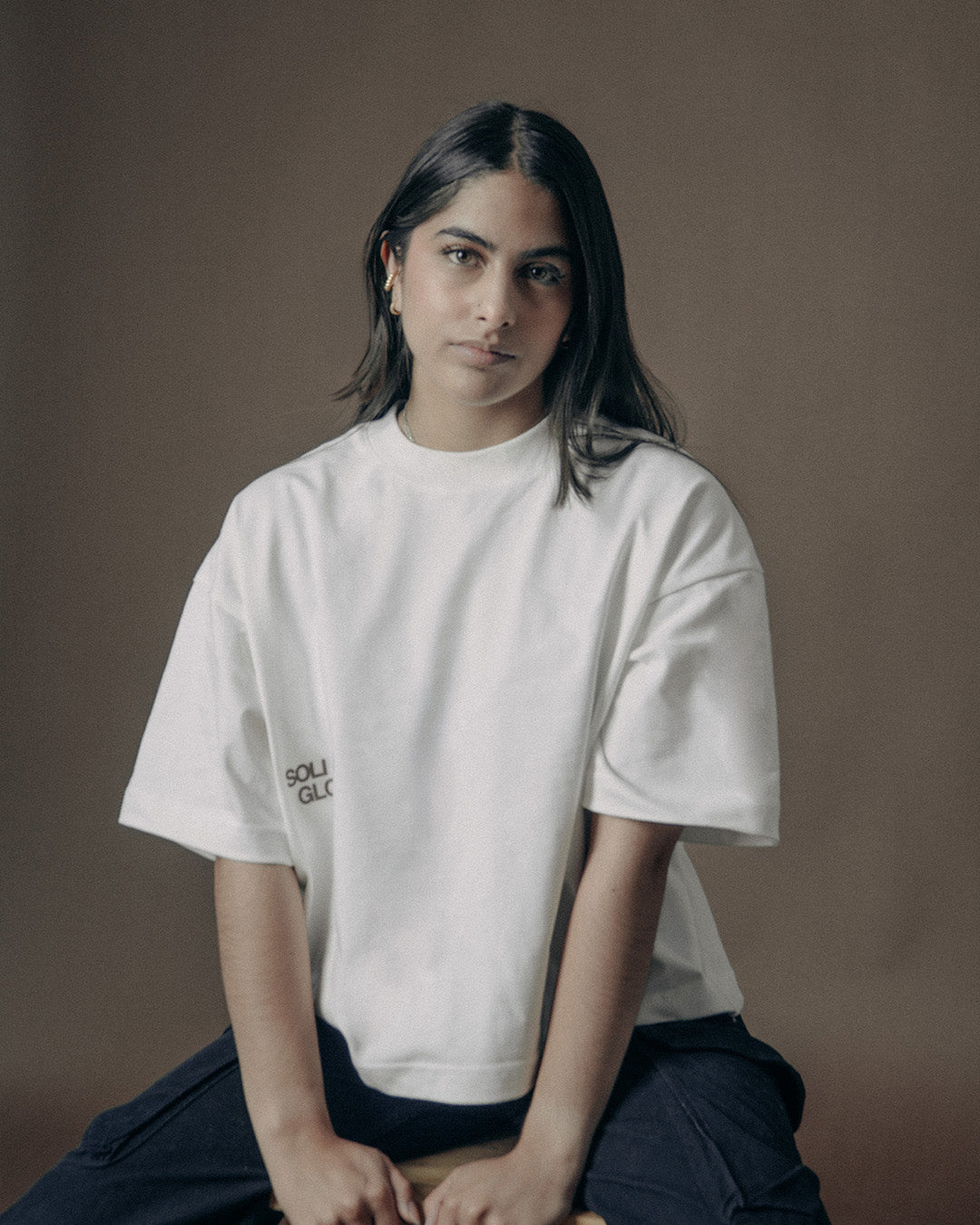 Camiseta color blanco de molde Boxy, elaborada en tela 100% algodón de alto gramaje (350 gr), intervenida con estampado gráfico en serigrafía en frente y espalda.